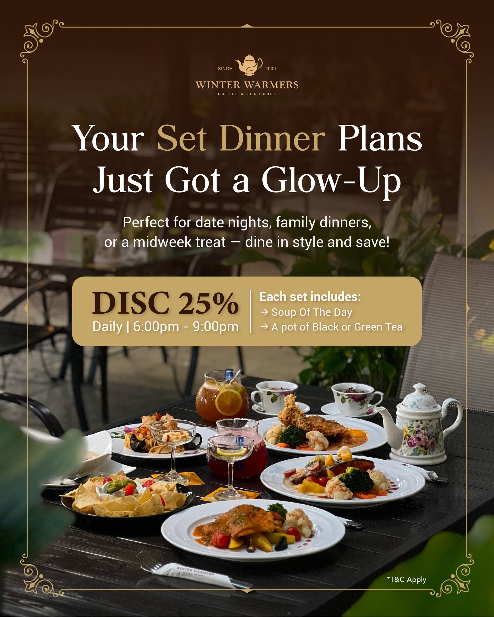 Whether it’s a cozy date night, family gathering, or a midweek indulgence — enjoy an elevated dining experience with 25% OFF Set Dinners.