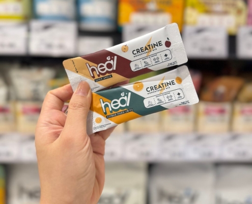 Heal has you covered — from protein snacks to daily essentials like creatine and protein shakes for after the gym.