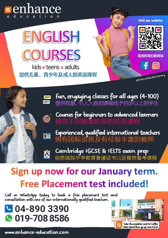 Get ready for the new year – contact Enhance Education to find out which class suits you best and take a free placement test!