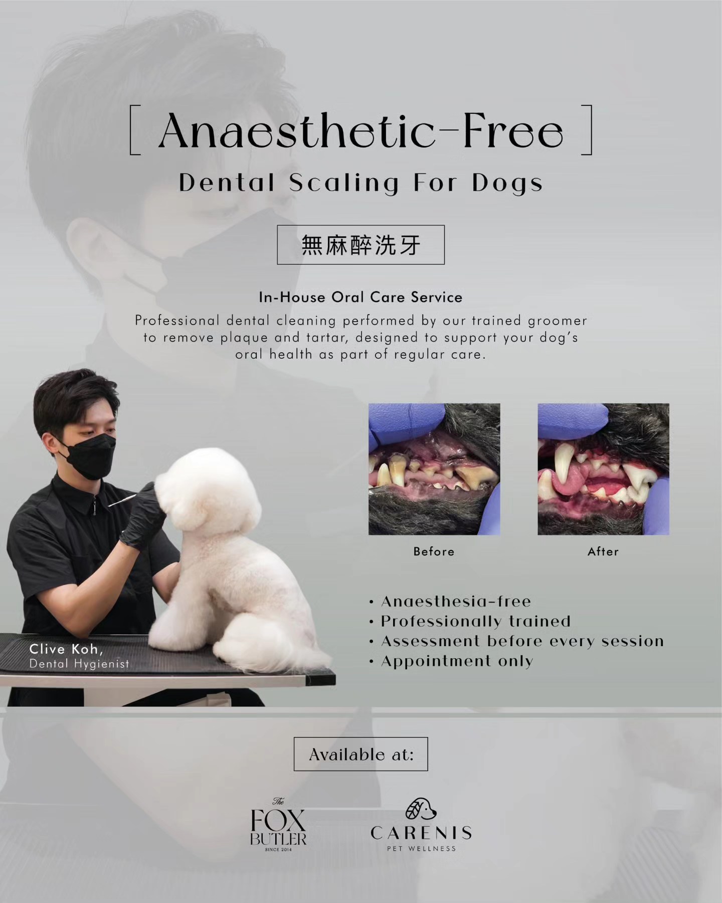Starting 15 January 2026, Carenis Pet Wellness is offering non-anaesthetic dental scaling as a regular in-house service, performed by our trained grooming team.
