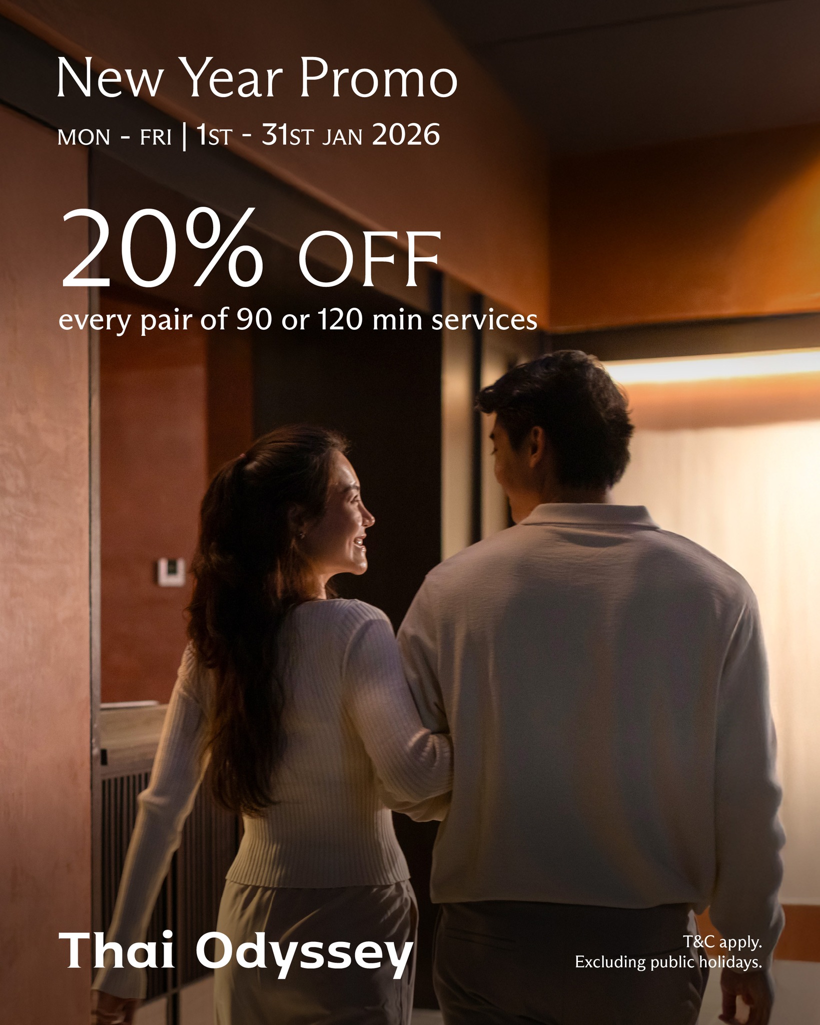 From 1–31 January 2026, enjoy 20% off with every pair of 90- or 120-minute services, available Monday to Friday.