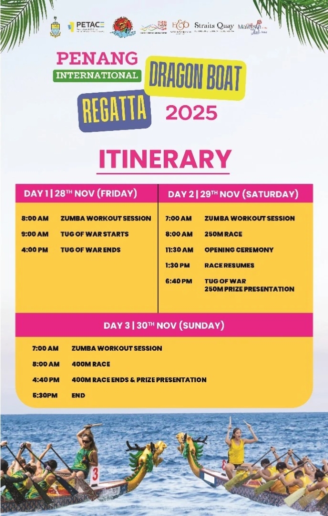 Mark your calendars! 📅🚣🏻The Penang International Dragon Boat Race 2025 is happening 28–30 November with full-day race heats and thrilling finals. Bring your family and friends for an unforgettable waterfront festival!