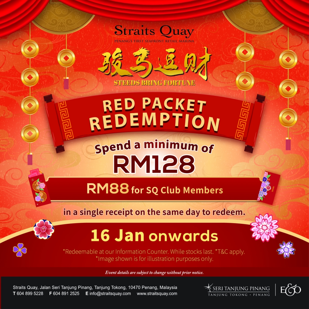 Spend, shop & redeem your CNY Red Packets when you spend RM128 (RM88 for SQ Club Members) in a single receipt!