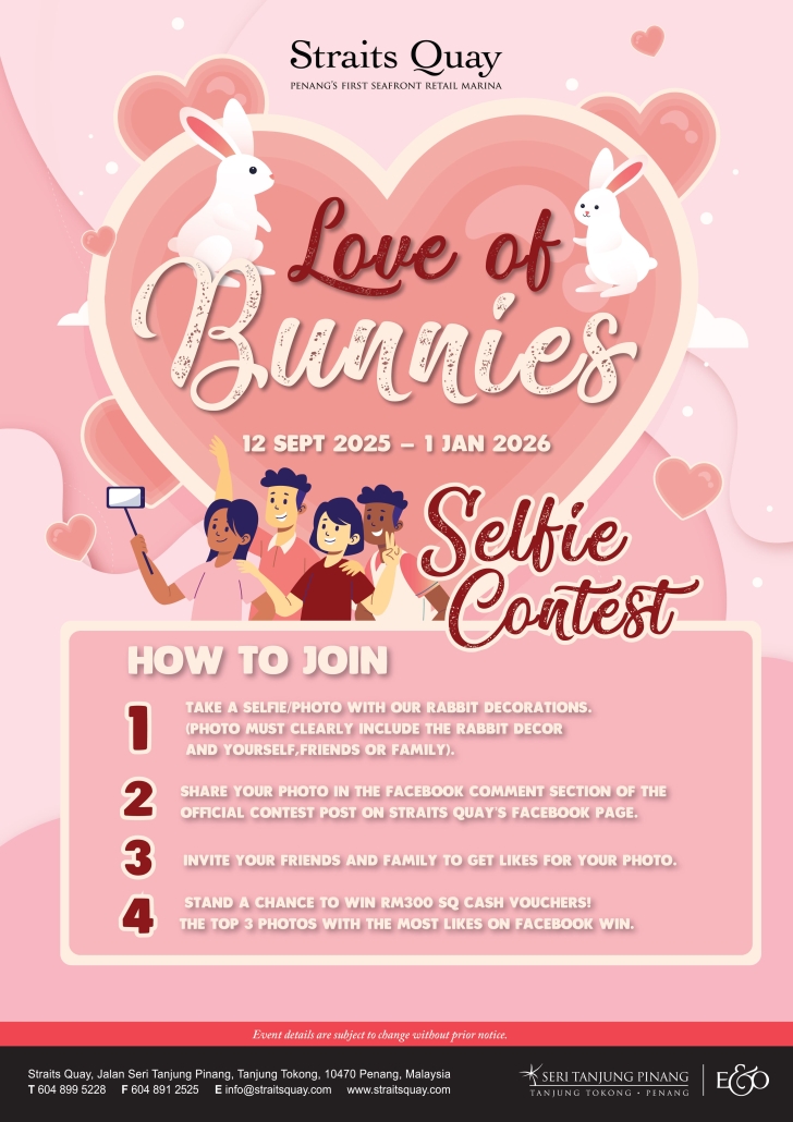 Have you spotted our bunnies at Straits Quay? Snap a selfie with them and stand a chance to win RM300 SQ Cash Vouchers! 🎁✨
