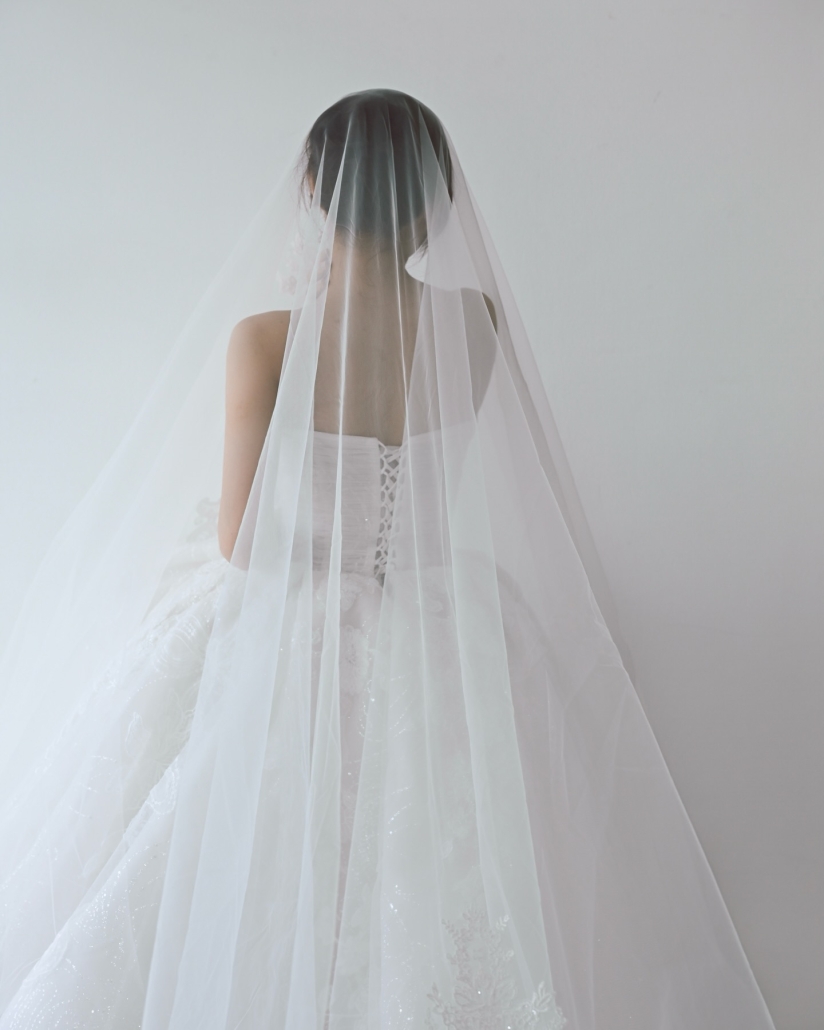 The veil gently drapes,